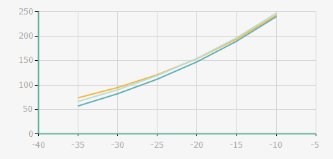 | 蒸發(fā)溫度 | 制冷量+/-5% | 能耗+/-5% | 現(xiàn)在能效+/-5% | 氣體流速+/-5% | 能效+/-7% | ||||