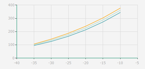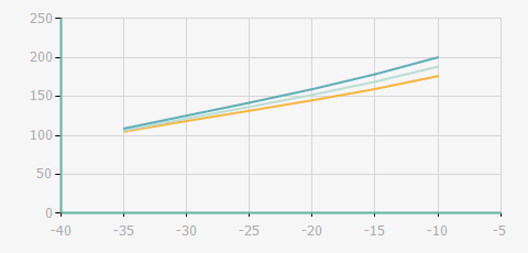 | 蒸發(fā)溫度 | 制冷量+/-5% | 能耗+/-5% | 現在能效+/-5% | 氣體流速+/-5% | 能效+/-7% | ||||