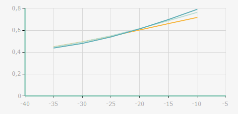 | 蒸發(fā)溫度 | 制冷量+/-5% | 能耗+/-5% | 現(xiàn)在能效+/-5% | 氣體流速+/-5% | 能效+/-7% | ||||