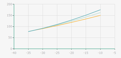 | 蒸發(fā)溫度 | 制冷量+/-5% | 能耗+/-5% | 現(xiàn)在能效+/-5% | 氣體流速+/-5% | 能效+/-7% | ||||