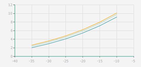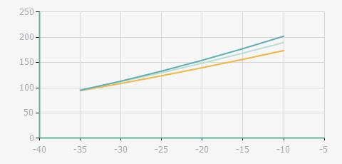 | 蒸發(fā)溫度 | 制冷量+/-5% | 能耗+/-5% | 現(xiàn)在能效+/-5% | 氣體流速+/-5% | 能效+/-7% | ||||
