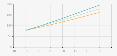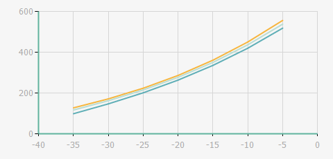 | 蒸發(fā)溫度 | 制冷量+/-5% | 能耗+/-5% | 現(xiàn)在能效+/-5% | 氣體流速+/-5% | 能效+/-7% | ||||