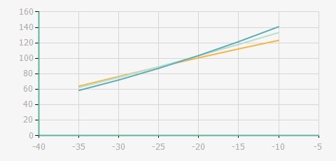 | 蒸發(fā)溫度 | 制冷量+/-5% | 能耗+/-5% | 現(xiàn)在能效+/-5% | 氣體流速+/-5% | 能效+/-7% | ||||