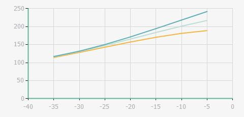 | 蒸發(fā)溫度 | 制冷量+/-5% | 能耗+/-5% | 現(xiàn)在能效+/-5% | 氣體流速+/-5% | 能效+/-7% | ||||