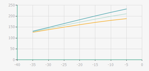 | 蒸發(fā)溫度 | 制冷量+/-5% | 能耗+/-5% | 現(xiàn)在能效+/-5% | 氣體流速+/-5% | 能效+/-7% | ||||
