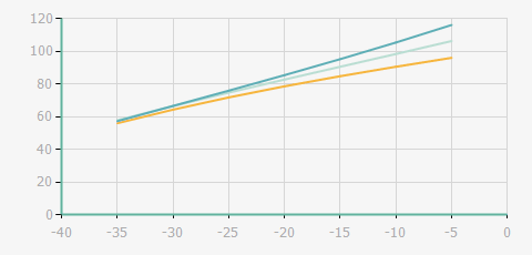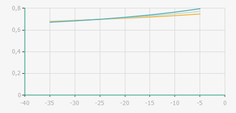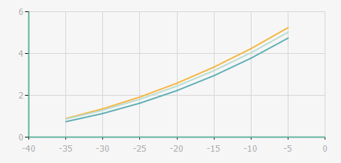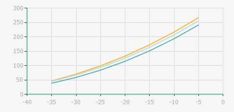 | 蒸發(fā)溫度 | 制冷量+/-5% | 能耗+/-5% | 現(xiàn)在能效+/-5% | 氣體流速+/-5% | 能效+/-7% | ||||