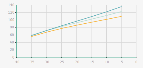 | 蒸發(fā)溫度 | 制冷量+/-5% | 能耗+/-5% | 現(xiàn)在能效+/-5% | 氣體流速+/-5% | 能效+/-7% | ||||