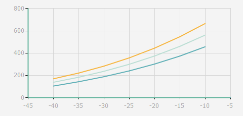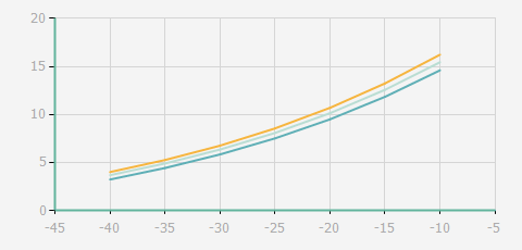 | 蒸發(fā)溫度 | 制冷量+/-5% | 能耗+/-5% | 現(xiàn)在能效+/-5% | 氣體流速+/-5% | 能效+/-7% | ||||