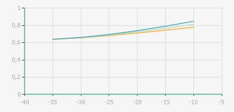 | 蒸發(fā)溫度 | 制冷量+/-5% | 能耗+/-5% | 現(xiàn)在能效+/-5% | 氣體流速+/-5% | 能效+/-7% | ||||