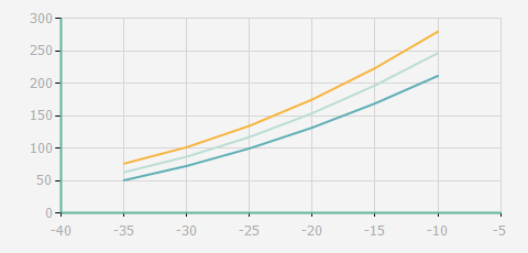 | 蒸發(fā)溫度 | 制冷量+/-5% | 能耗+/-5% | 現(xiàn)在能效+/-5% | 氣體流速+/-5% | 能效+/-7% | ||||