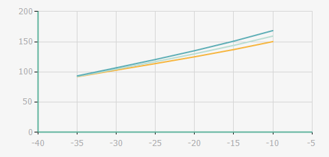 | 蒸發(fā)溫度 | 制冷量+/-5% | 能耗+/-5% | 現(xiàn)在能效+/-5% | 氣體流速+/-5% | 能效+/-7% | ||||
