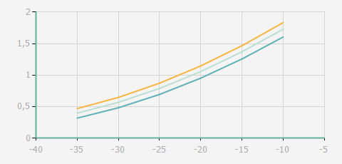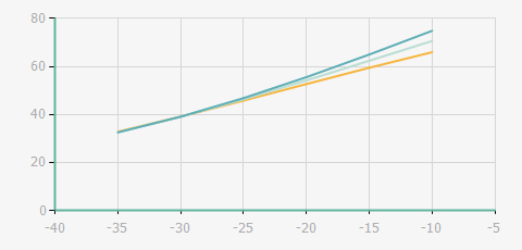 | 蒸發(fā)溫度 | 制冷量+/-5% | 能耗+/-5% | 現(xiàn)在能效+/-5% | 氣體流速+/-5% | 能效+/-7% | ||||