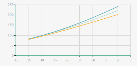 | 蒸發(fā)溫度 | 制冷量+/-5% | 能耗+/-5% | 現(xiàn)在能效+/-5% | 氣體流速+/-5% | 能效+/-7% | ||||