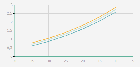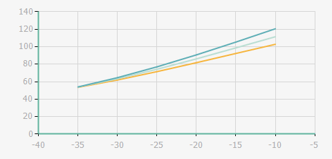 | 蒸發(fā)溫度 | 制冷量+/-5% | 能耗+/-5% | 現(xiàn)在能效+/-5% | 氣體流速+/-5% | 能效+/-7% | ||||