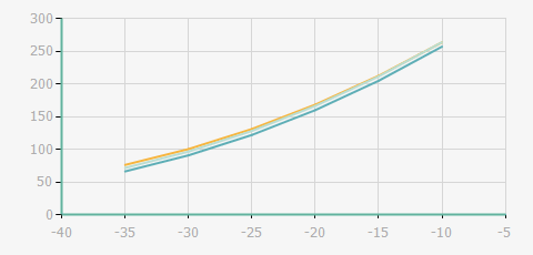 | 蒸發(fā)溫度 | 制冷量+/-5% | 能耗+/-5% | 現(xiàn)在能效+/-5% | 氣體流速+/-5% | 能效+/-7% | ||||
