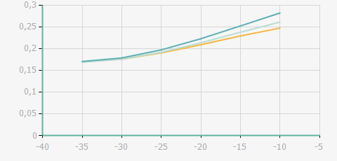 | 蒸發(fā)溫度 | 制冷量+/-5% | 能耗+/-5% | 現(xiàn)在能效+/-5% | 氣體流速+/-5% | 能效+/-7% | ||||