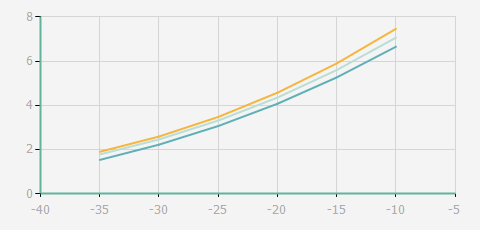 | 蒸發(fā)溫度 | 制冷量+/-5% | 能耗+/-5% | 現(xiàn)在能效+/-5% | 氣體流速+/-5% | 能效+/-7% | ||||